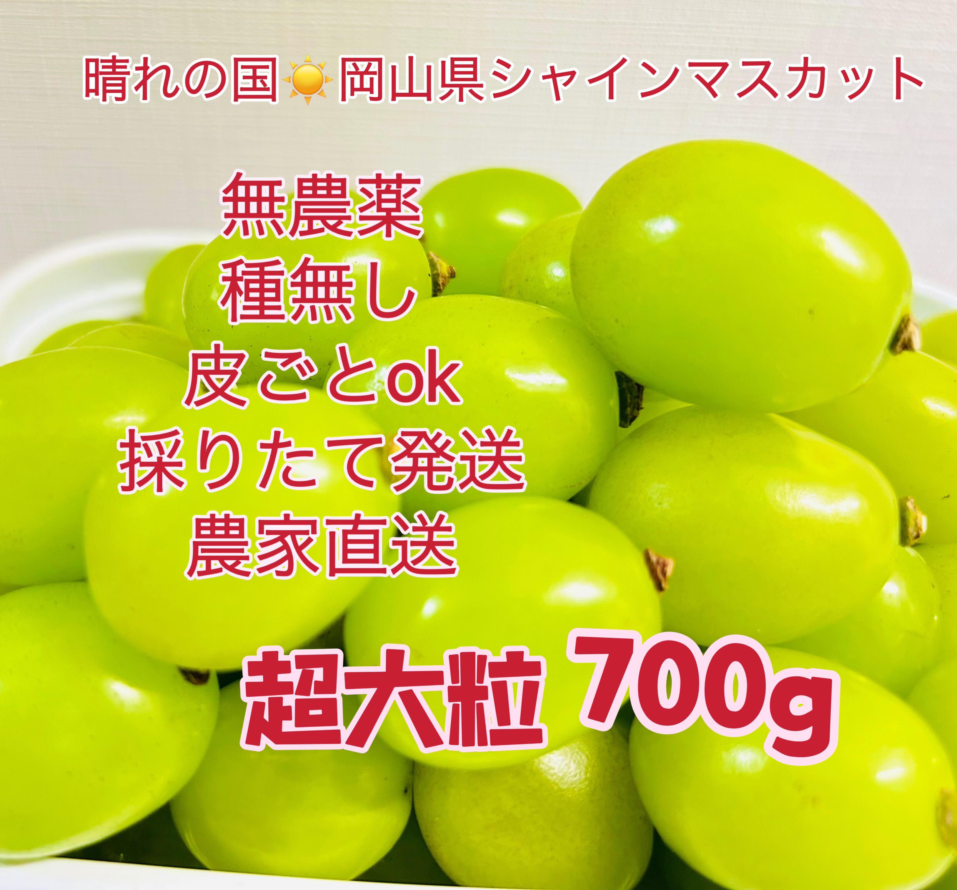 岡山県シャインマスカト農林大臣賞無農薬700g超大粒粒だけ厳選秀品特別芳純な香り 贅沢な甘さ 温室シャインマスカット プレミアム