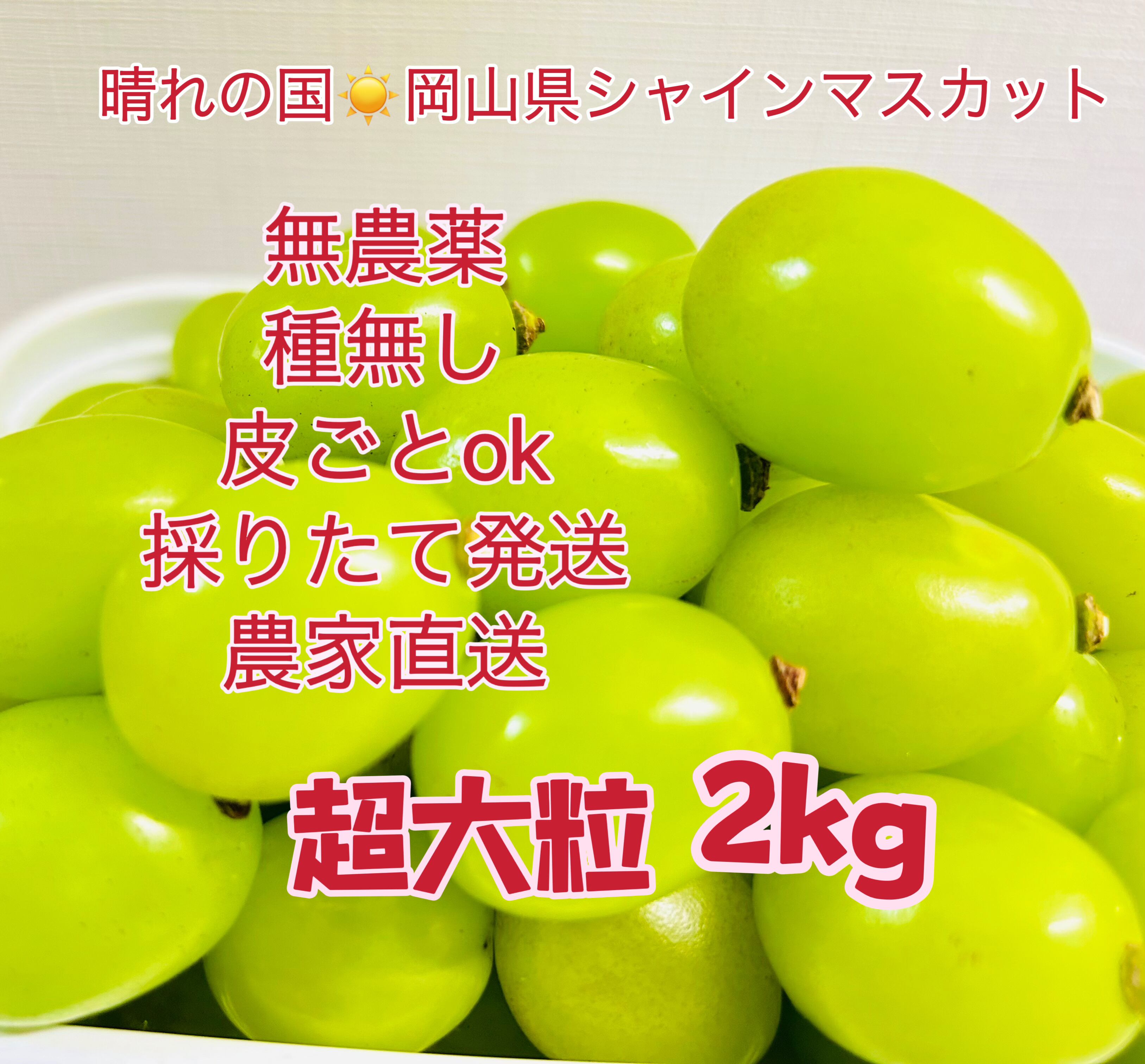 岡山県シャインマスカト農林大臣賞無農薬2kg超大粒粒だけ厳選秀品特別芳純な香り 贅沢な甘さ 温室シャインマスカット プレミアム